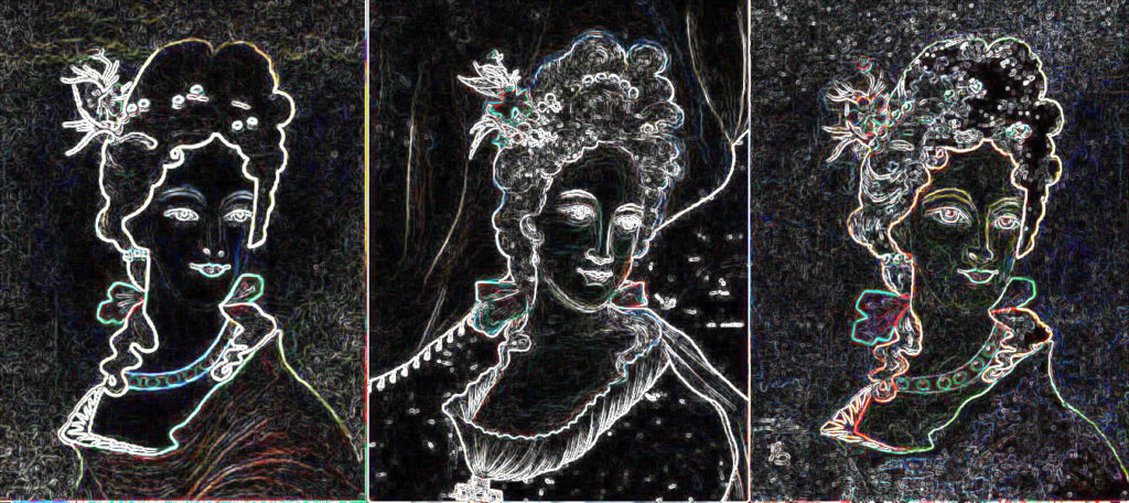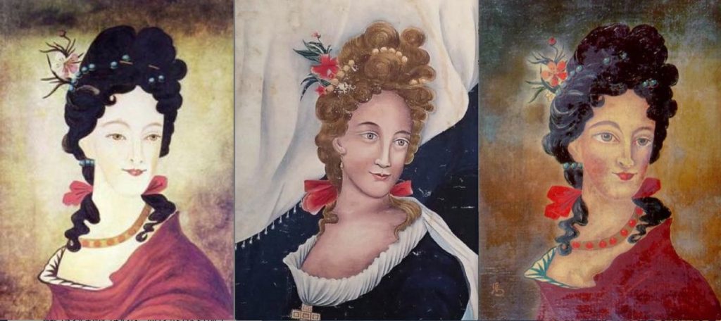 After the “camera obscura” was imported it became presumably widespread in Japan. Though at the time it was called by various Japanese names as “Anshitsu-Kyo”, “Ansitsu-Shashin-Kyo” and so on, finally “Shashin-Kyo” became to stay as the Japanese name of the camera obscure. For example, there is a description on “Shashin-Kyo” in the book “Rangaku-Kotohajime” by Genpaku Sugita (1733-1817). It is not unquestionable when the name, “Shashin-Kyo” began to be used but Gen’nai Hiraga and Kohkan Shiba (1747 – 1818), a famous painter, are believed to be the namers of the “Shashin-Kyo” and the users of it, too. It is certain from various documents that Kohkan Shiba was using a Shashin-Kyo for painting. On the other hand, it is described in the above “Eizo no Kigen” that Gen’nai Hiraga must have use the “Shashin-Kyo” from the following reason. The reason is that there are a painting of “Seiko Fujin-zu (a lady of a western country)” (Akita Prefectural Museum), which extremely resembles a painting of “Seiko Fujin-zu”, by Gen’nai Hiraga (Kobe Municipal Museum), and a painting of “Seiko Danjo-zu (a gentleman and a lady of a western country)” (Kobe municipal museum), a lady of which also resembles extremely the left-and-right inverted above paintings. It is supposed that Gen’nai produced same paintings by tracing an original painting by using a “Shashin-Kyo”.