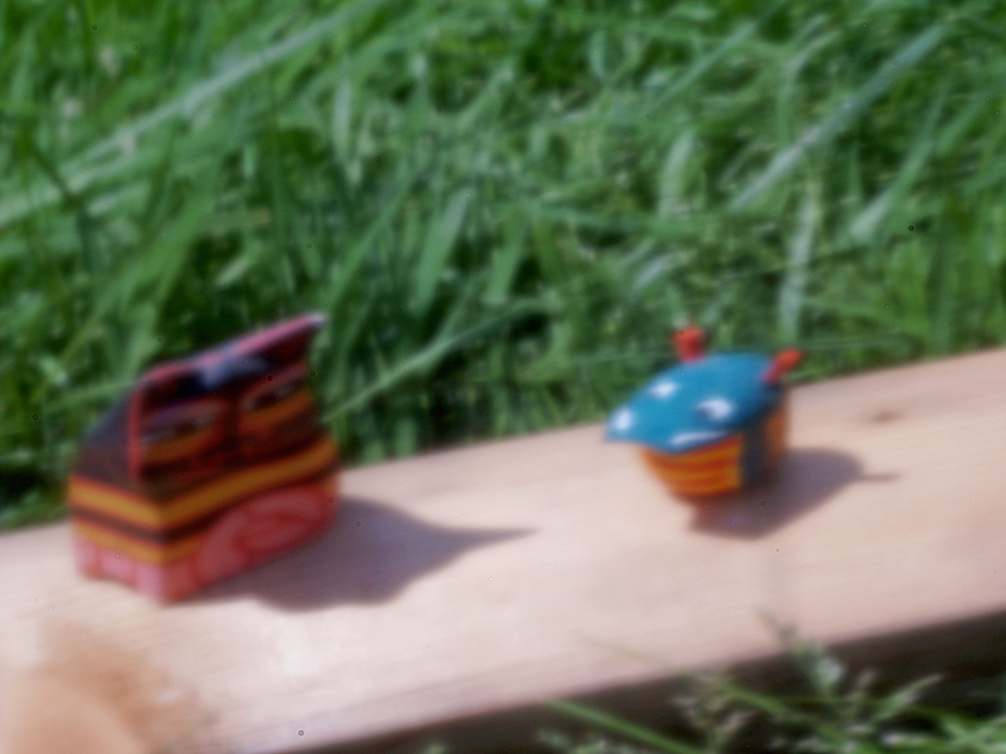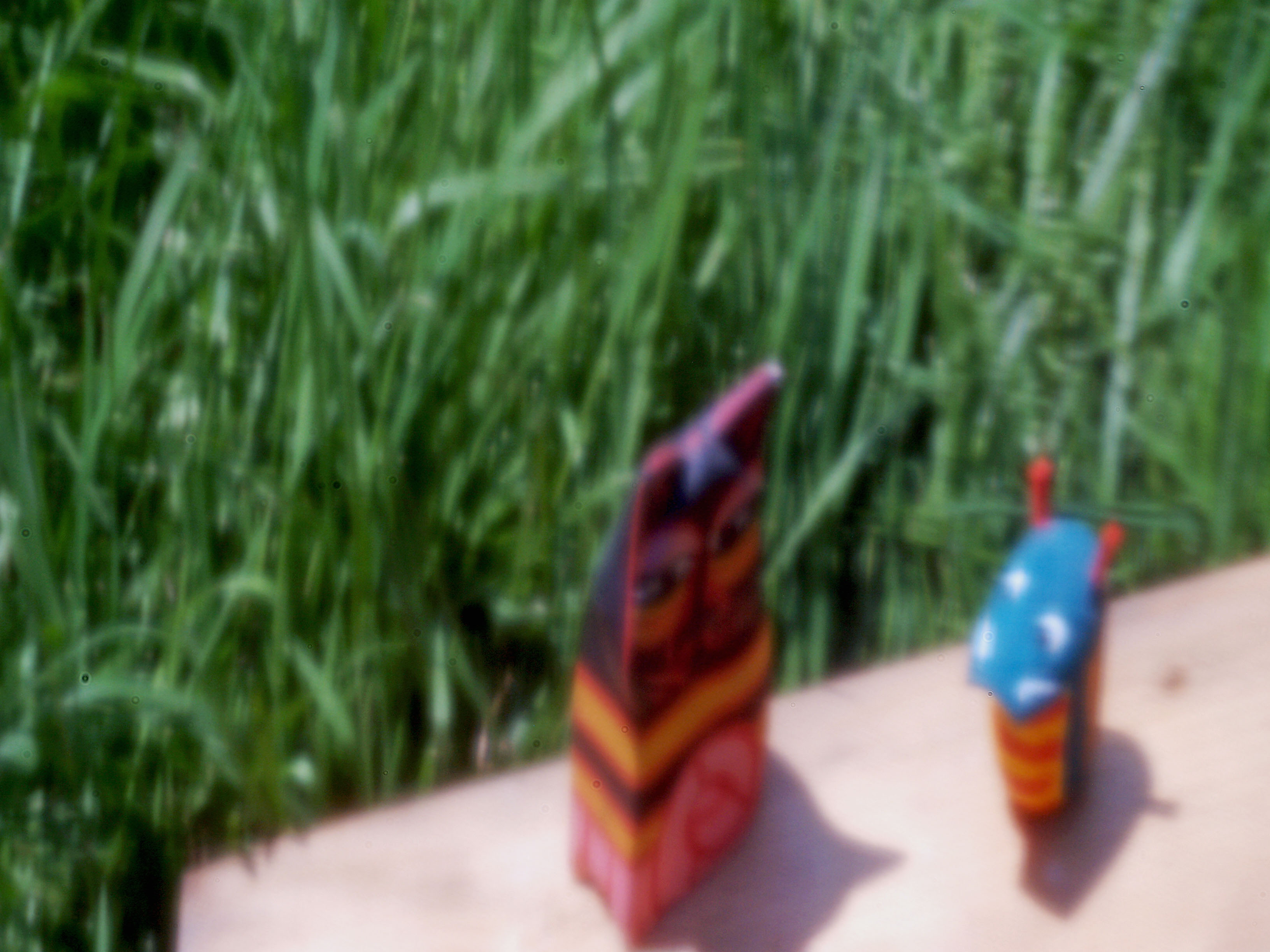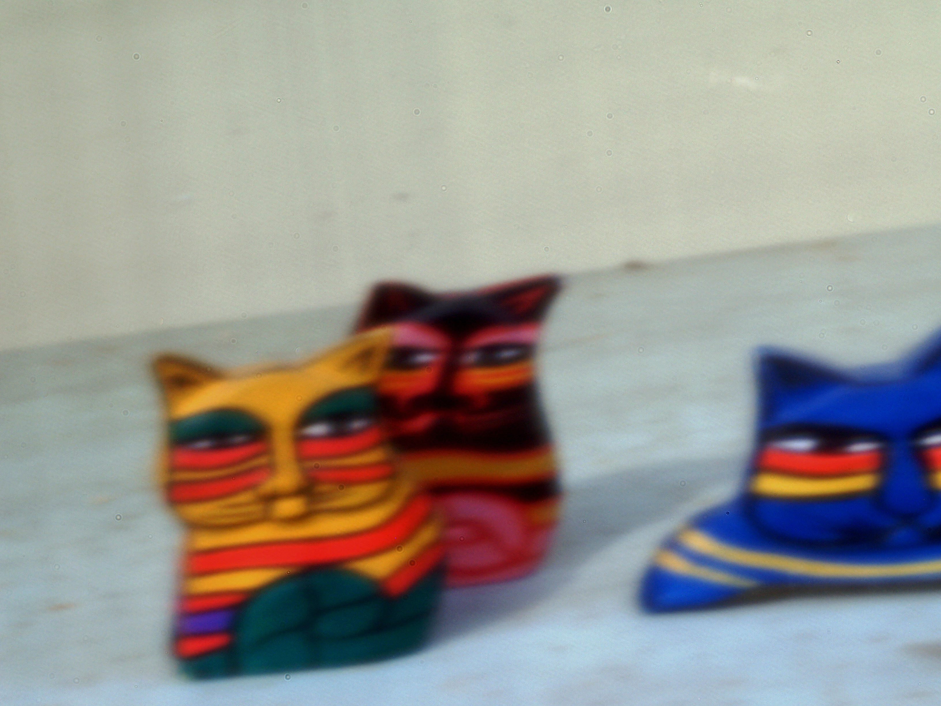 ●[3-4] They must be wooden cats of tropical island. They are enshrined in my bookshelf and watch over us with a Japanese self-rising dragon doll.