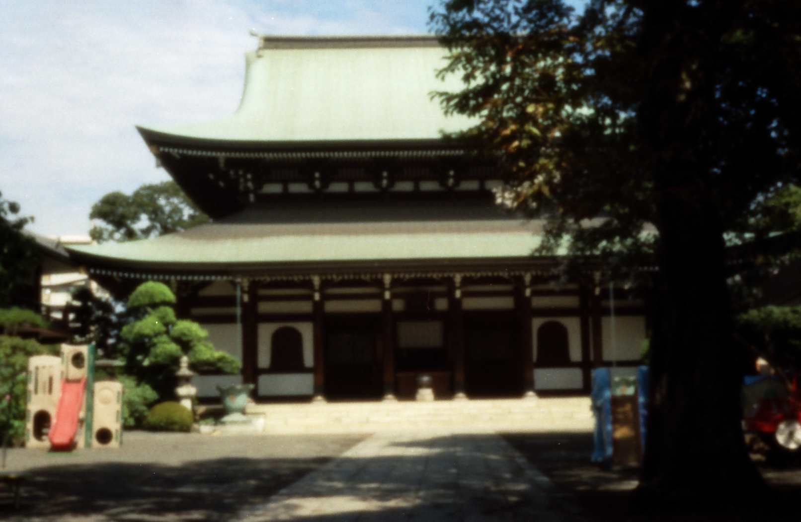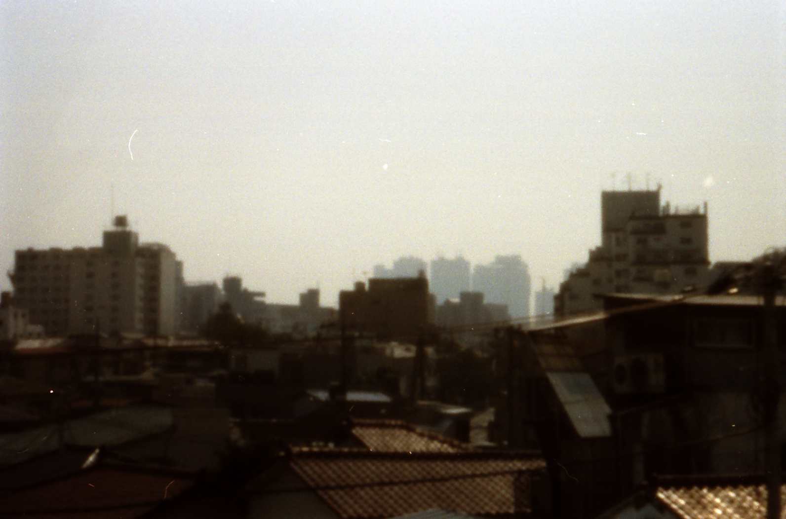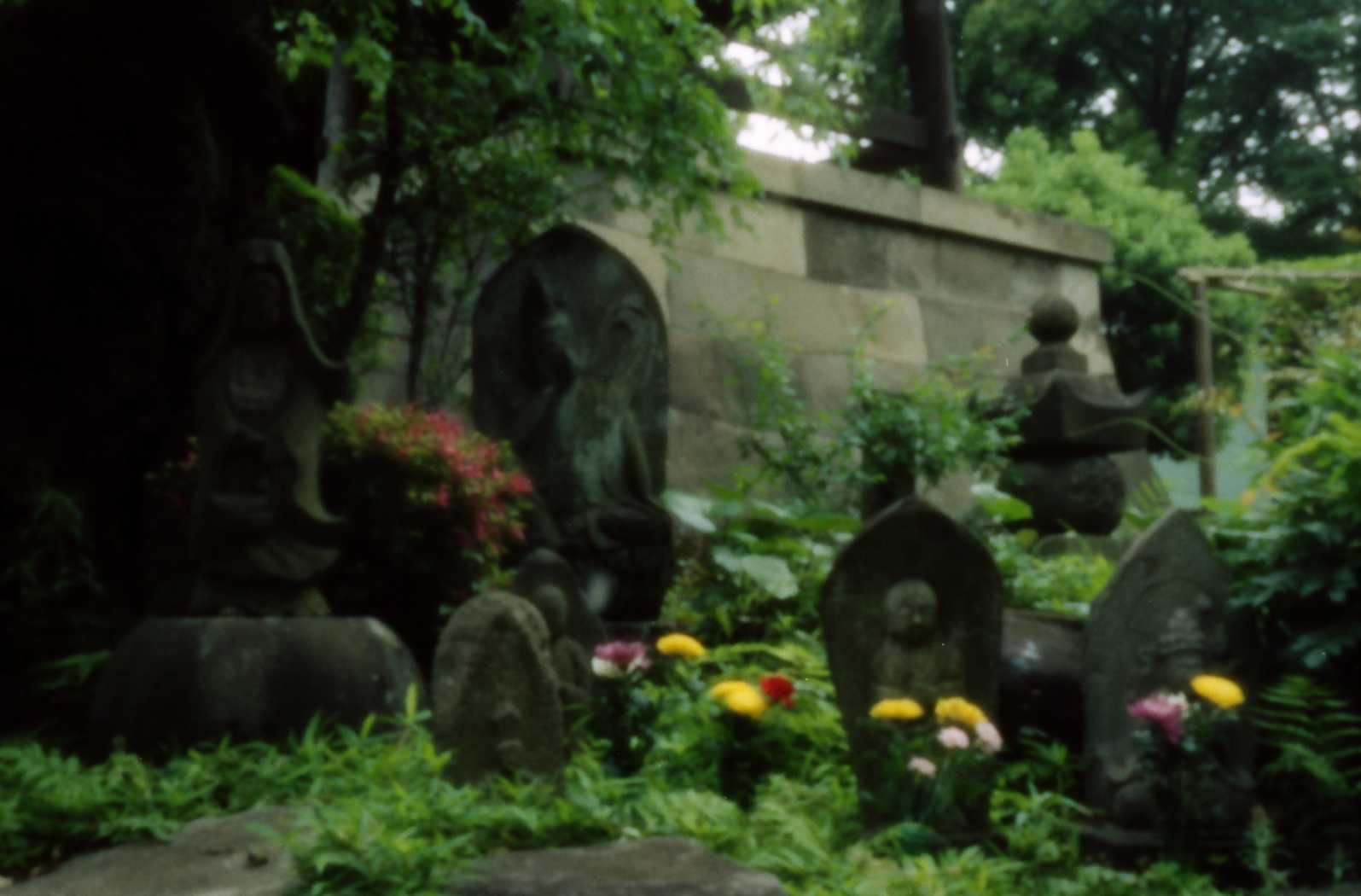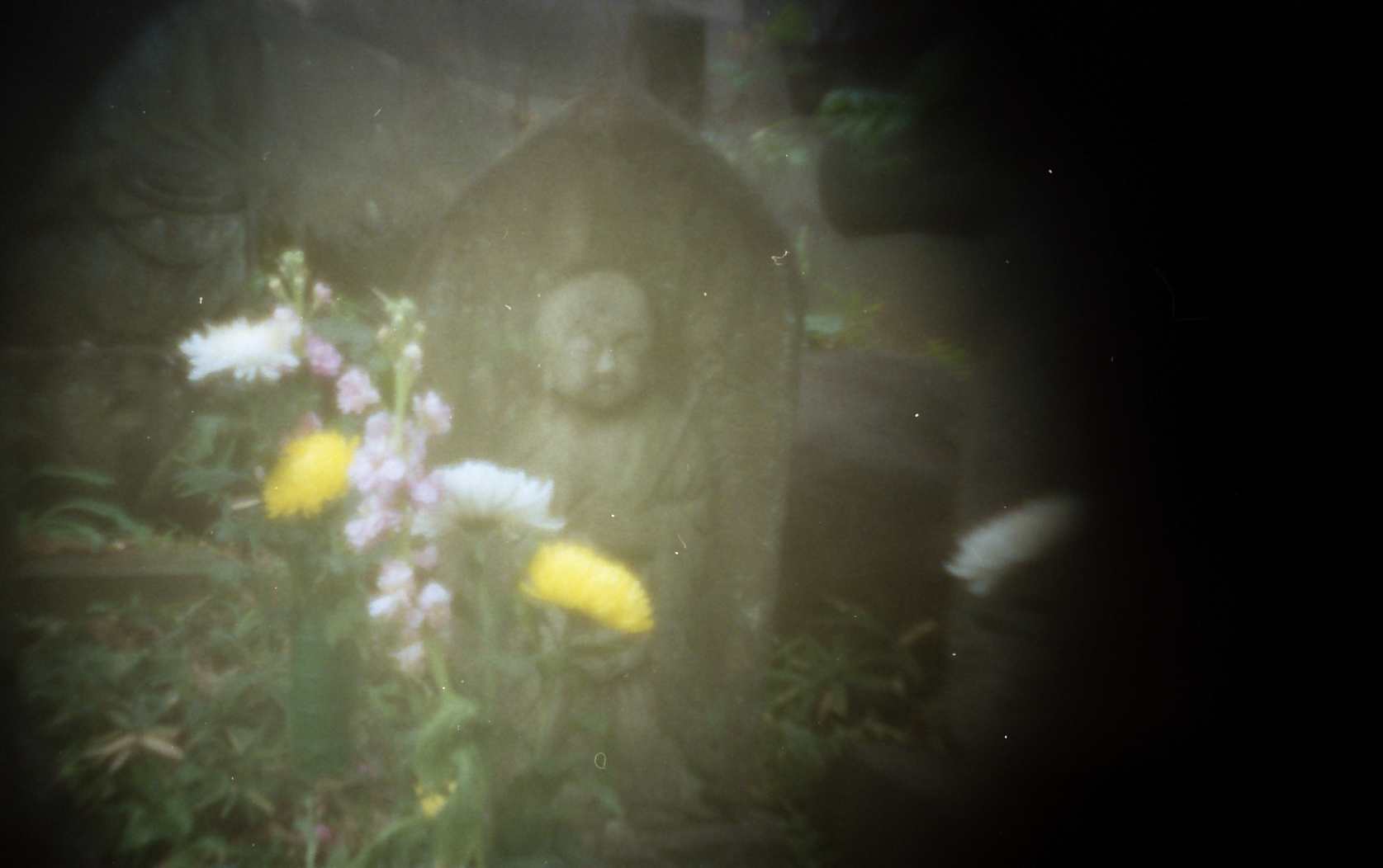 The following pinhole photographs were taken by an Olympus SLR, OM2 (silver film) with a pinhole of diameter=0.3 mm instead of an interchangeable lens.  I started to take pinhole photographs around December of 2002, when I lived at Kamitakada of Nakano, Tokyo.  Objects of the photographs were found around my house.  Kamitakada is located at the west part of the periphery of the lord’s city Edo in Tokugawa period and there are many historic temples with tombs of famous people.  For example, in Koh’un-ji temple where I often took photographs, there are tombs of Kira-Kouzukenosuke Yoshihisa, famous program of Chushingura of Kabuki, and Toyokuni Utagawa, a famous woodblock artist, and so on.