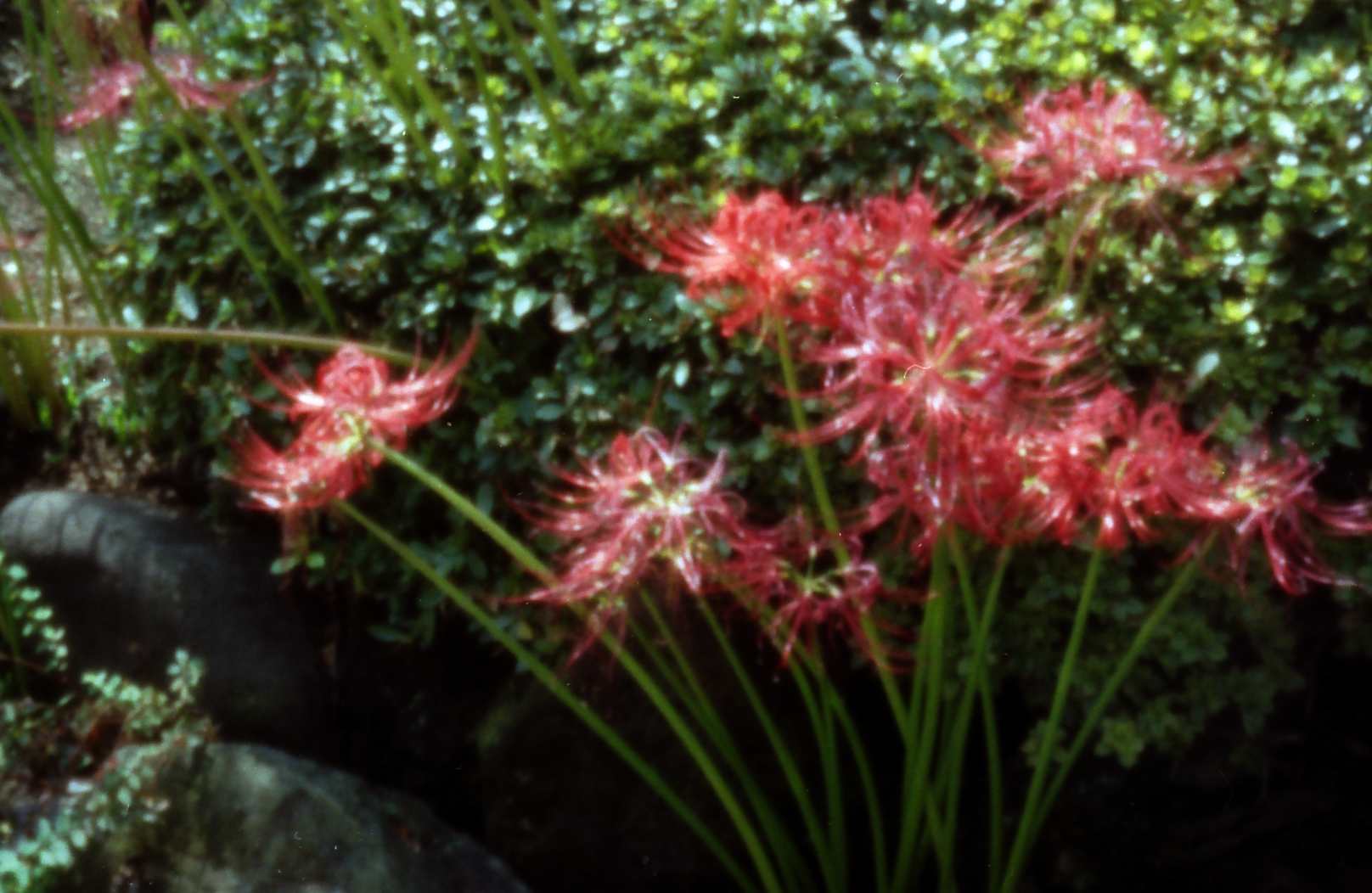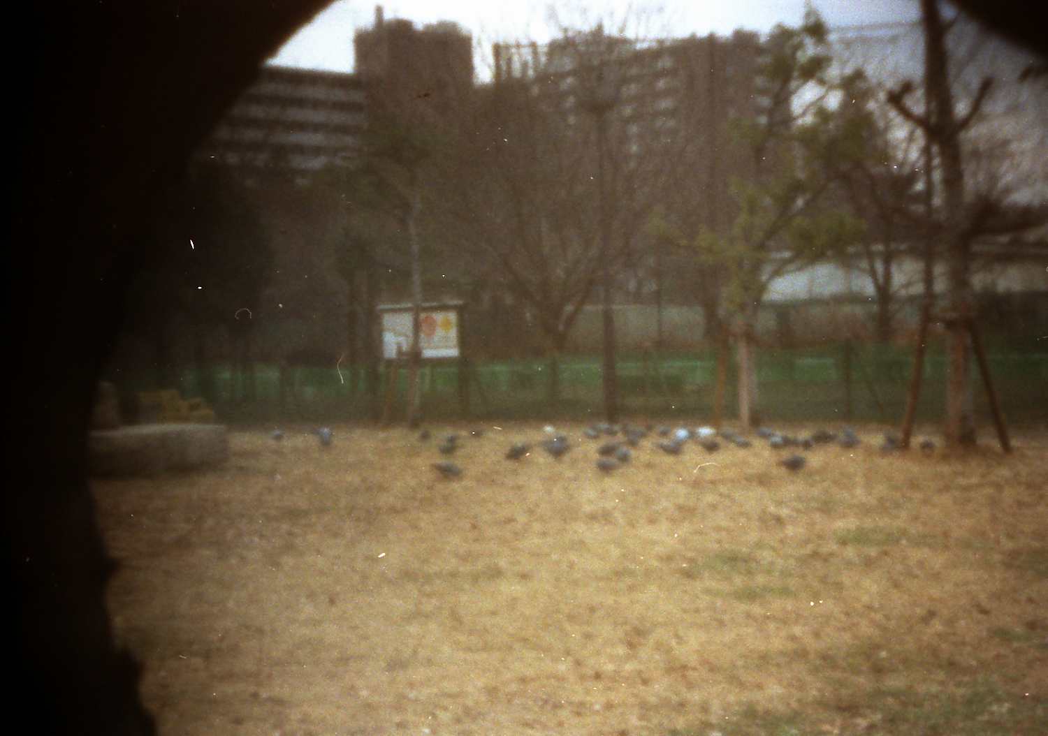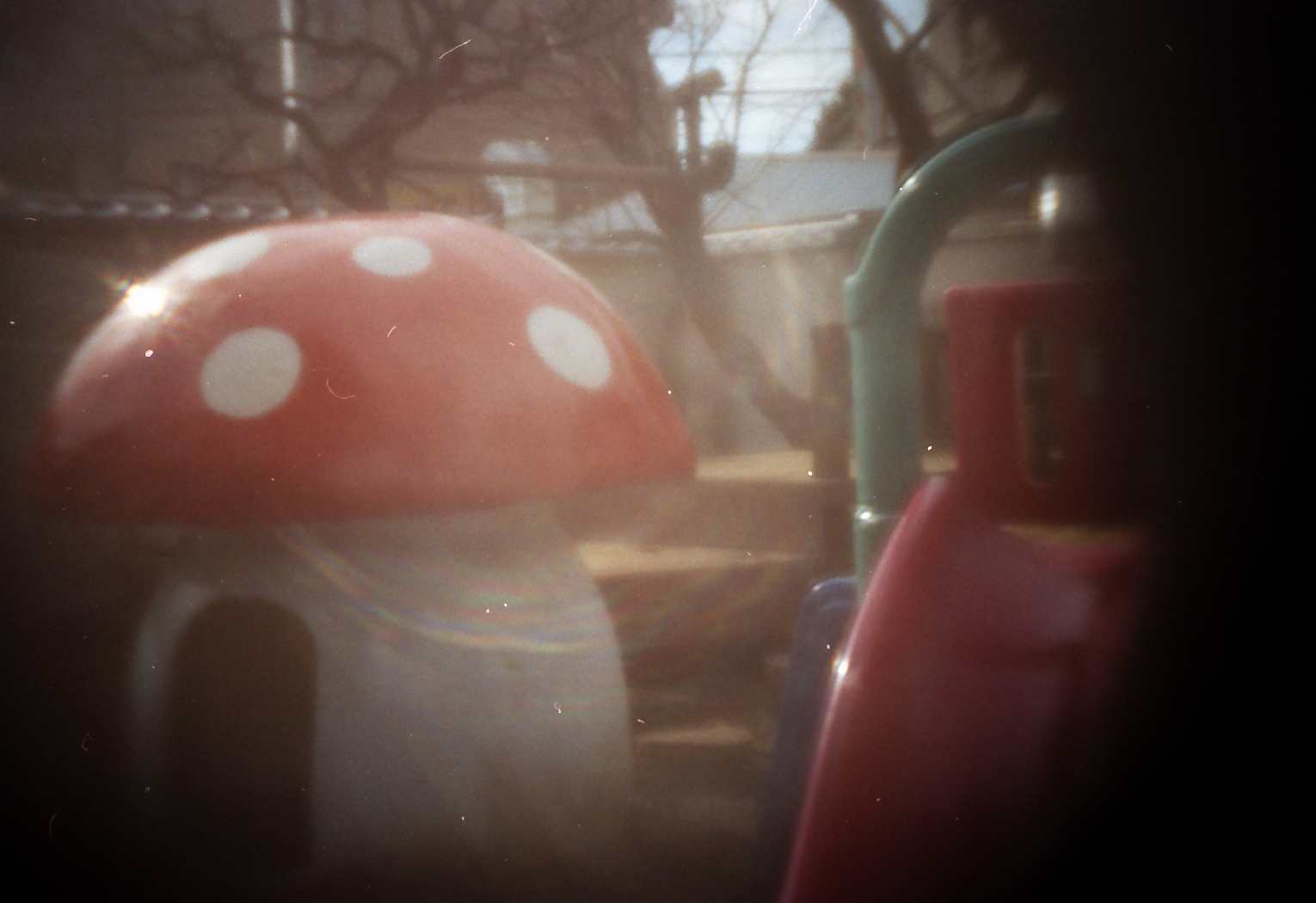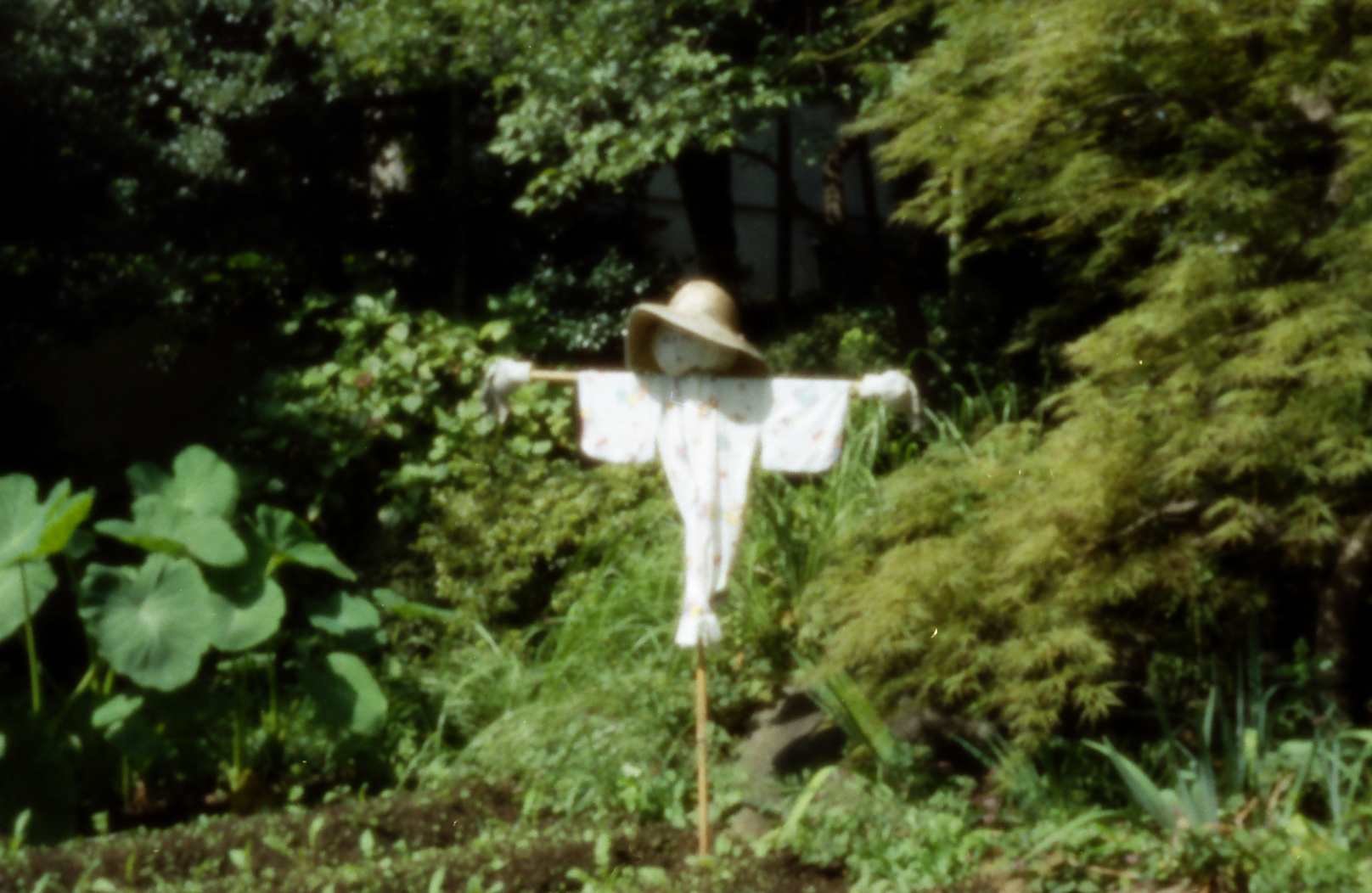 The following pinhole photographs were taken by an Olympus SLR, OM2 (silver film) with a pinhole of diameter=0.3 mm instead of an interchangeable lens.  I started to take pinhole photographs around December of 2002, when I lived at Kamitakada of Nakano, Tokyo.  Objects of the photographs were found around my house.  Kamitakada is located at the west part of the periphery of the lord’s city Edo in Tokugawa period and there are many historic temples with tombs of famous people.  For example, in Koh’un-ji temple where I often took photographs, there are tombs of Kira-Kouzukenosuke Yoshihisa, famous program of Chushingura of Kabuki, and Toyokuni Utagawa, a famous woodblock artist, and so on.