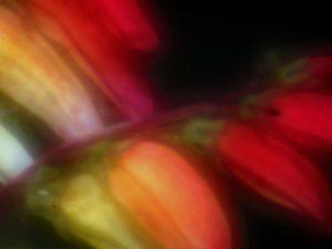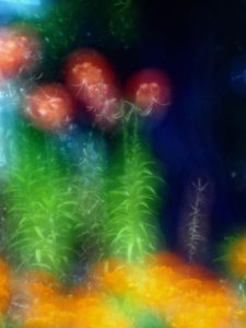 以下に、この「黒い背景に浮き上がる花達」の写真の例をいくつか示します。一般に、あかるい花が密集して咲いている所の背後のやや薄暗い部分が目で見たときよりもハッキリと暗く写ります。