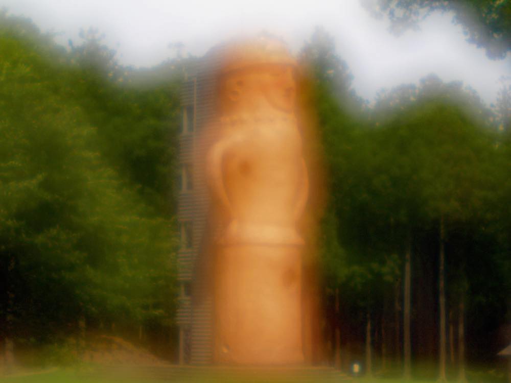 したので写真の内、茨城県庁ビルとねこ人形のゾーンプレート写真は、比較のために、焦点距離が300mmのものと50mmのものを載せてあります。また、はに丸タワーの写真は焦点距離が200mmのゾーンプレートを用いていろいろな距離から撮影したものです。