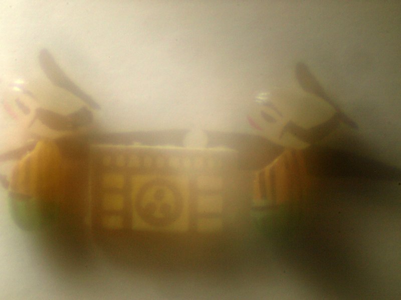 このページは、(3)「その他」として、動物でも植物でもない被写体のマクロ写真を集めてあります。「米粒人形」は、私の住んでいる水戸市ゆかりの水戸黄門に因んだ工芸品で、大名行列を構成する人形の頭と胴はそれぞれ1粒の米粒で作られており、眼、鼻、口、頭髪及び着物の柄や文字が細密に描き込まれています。米粒の大きさから判断すれば模様や文字の大きさがいかに小さいかが分かります。スクリームショー(Scrimshaw) は19世紀の中頃から米国の捕鯨船の水夫によって行われてきた鯨の歯を使った彫刻で、後にこの彫刻は趣味として一般人の間に広がりました。写真にあるものは、私が初めて米国出張をした際に2ヶ月間滞在したサンディエゴのホームステイ先のMr. Rob Roy Bittmann (米海軍の建築家)が別れ際に私の為に彫ってくれた記念品です。世の中には色々なスクリームショーがありますが、この写真のものはあっさりとした鯨の線画です。細い線ですが、ゾーンプレートマクロ撮影でくっきりと鮮明に写っています。切手の写真や一万円札の福沢諭吉像は、細かい模様をどれ位再現できるかを確かめる為に撮影したものです。このような模様以外に、日本の紙幣には肉眼では見つけ出しにくい多数の隠し文字が印刷されています。そのうちの一例がゾーンプレート写真研究室のゾーンプレートマクロ撮影(2)のページに記してあります。ゾーンプレートマクロ写真で、高さ約 0.2 mm のアルファベットの文字を写し取る事ができました。