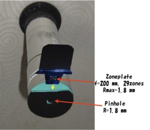 図1 背景光除去用のピンホールとゾーンプレートからなる撮影装置
