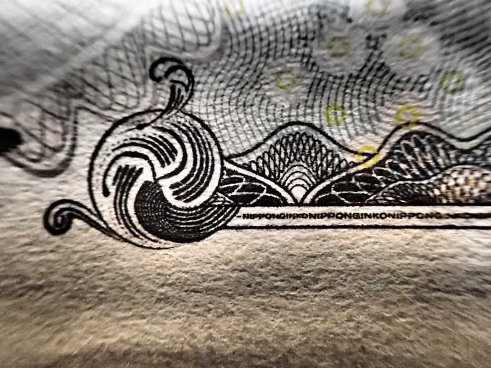 (2) 一万円札裏面下部のマクロ写真  Olympus TG-2 スーパーマクロモードで撮影