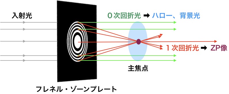 図1 収束してゾーンプレート像を作る光線と背景光