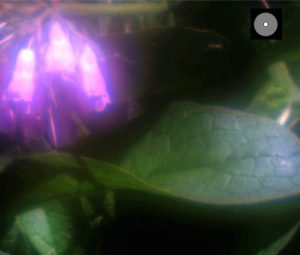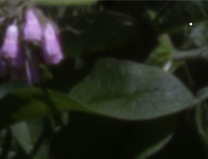 上の4枚の写真はピンホール(左上図)及び焦点距離55 mm、ゾーン数29のゾーンプレートで撮影したコンフリーの写真です。センサー面上でのゾーンプレートの大きさは写真の右上に示してあります。右上の写真は撮影したままのものです。左下の写真はレベル調整をして「背景からの光」の「かすみ」を取り除いたものです。中心ゾーンの円は上のピンホールと同じですが、葉脈や花の輪郭を見ると、明らかにピンホール写真よりも分解能が高いことがわかります。右下の写真はレベル調整をした後にHDR処理をしたもので、葉脈や花の構造が一層はっきりと見えます。