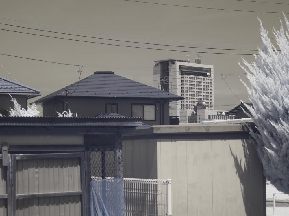 図3 レンズ付きカメラで撮った茨城県庁ビルの赤外線写真